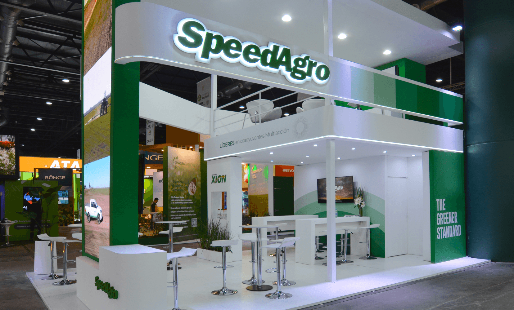 Este diseño permitió a Speed Agro consolidar su identidad dentro del evento, combinando estética y funcionalidad en un espacio que fomenta tanto la visibilidad de la marca como la generación de oportunidades de negocio.